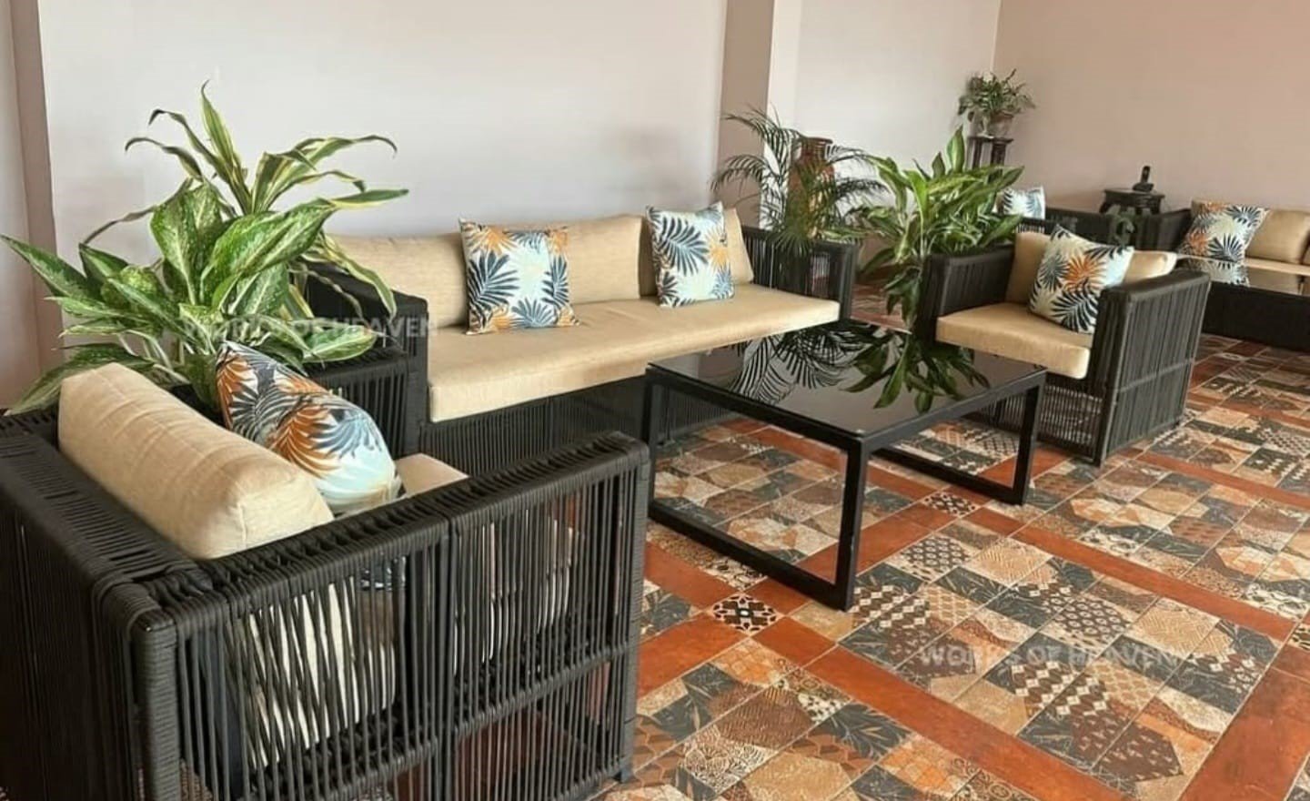 The lobby set looks extremely elegant and adds a premium touch to the entrance area. The build quality is strong and the cushions are very comfortable.